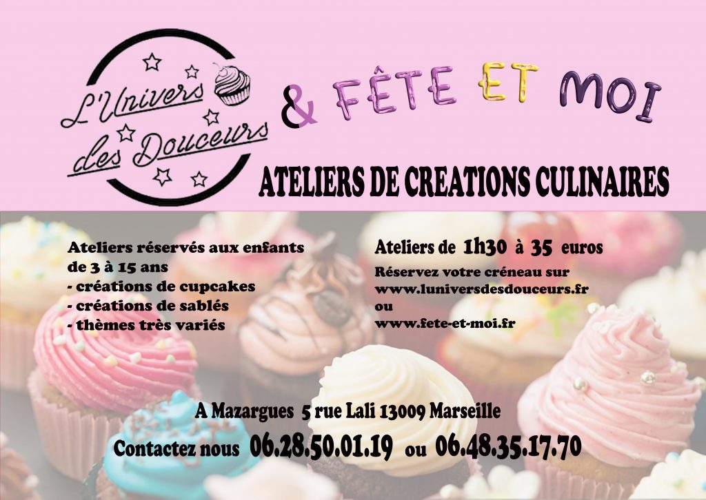 Vous l’avez demandé ? Nous le faisons enfin ! L’Univers des Douceurs et Fête et Moi s’associent pour vous proposer des ateliers de création de cupcakes et de sablés !